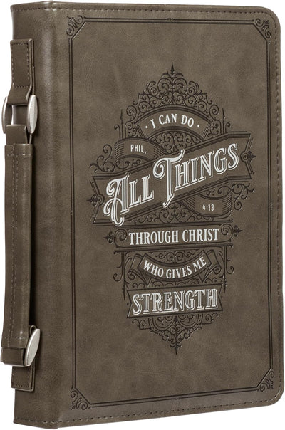 Bible Cover - All Things Through Christ - Philippians 4:13 Bible Verse with Zipper and Pocket, M