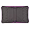 The back cover is heat-debossed with a continuous flower design that wraps around the spine, where you will find a lay-flat purple faux leather handle. There is an exterior zipper with a cross-engraved zipper pull, and 2 pen loops can be found on the inside of the Bible case.