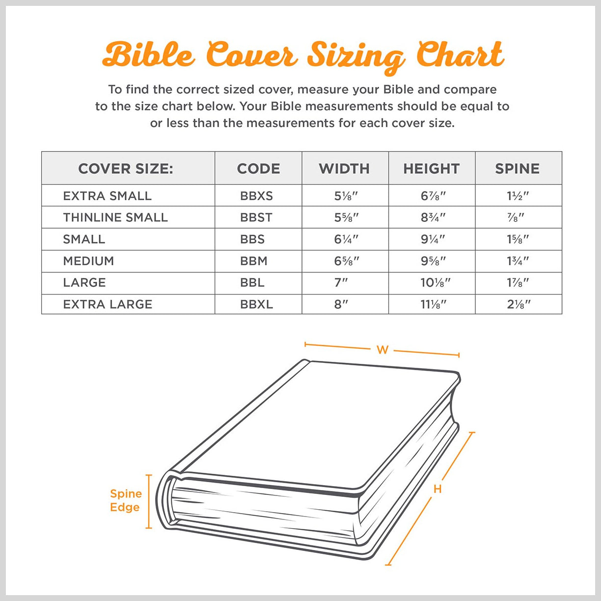 - Refer to Image Carousel for Bible Cover Sizing Chart