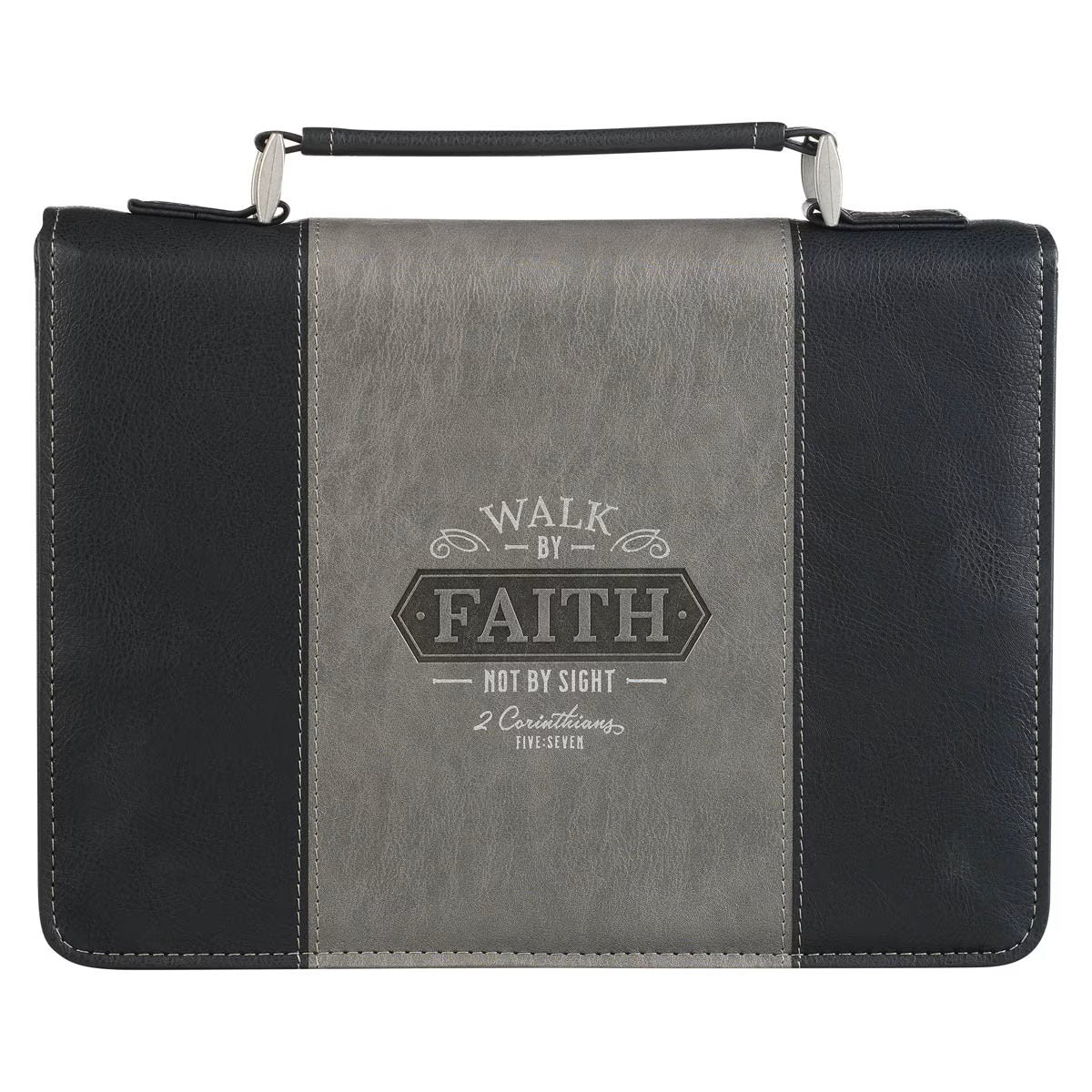 The Walk by Faith Black and Gray Faux Leather Classic Bible Cover will protect any Bible and look good in the hands of your family patriarch, whose bold faith has guided the generations of your family.