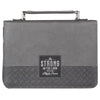 Be Strong in the Lord Gray and Black Faux Leather Classic Bible Cover - Ephesians 6:10