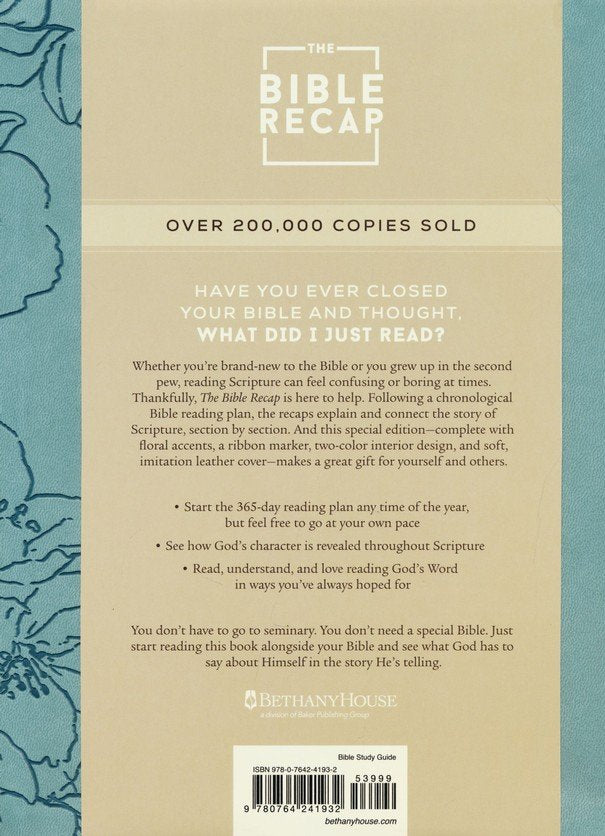 Whether you're brand-new to the Bible or you grew up in the second pew, reading Scripture can feel confusing or boring at times. Thankfully, The Bible Recap is here to help. Following a chronological Bible reading plan, the recaps explain and connect the story of Scripture, section by section. And this special edition--complete with floral accents, a ribbon marker, two-color interior design, and soft, imitation leather cover--makes a great gift for yourself and others.