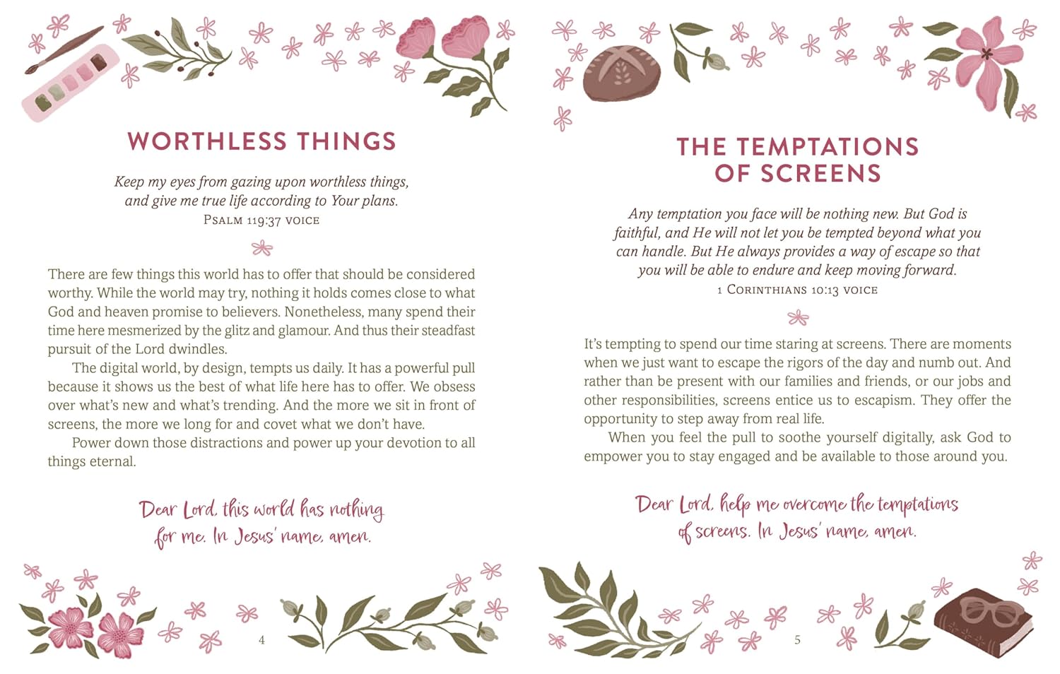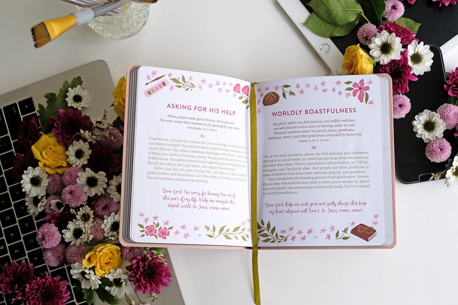- Encouraging scriptures accompany each entry