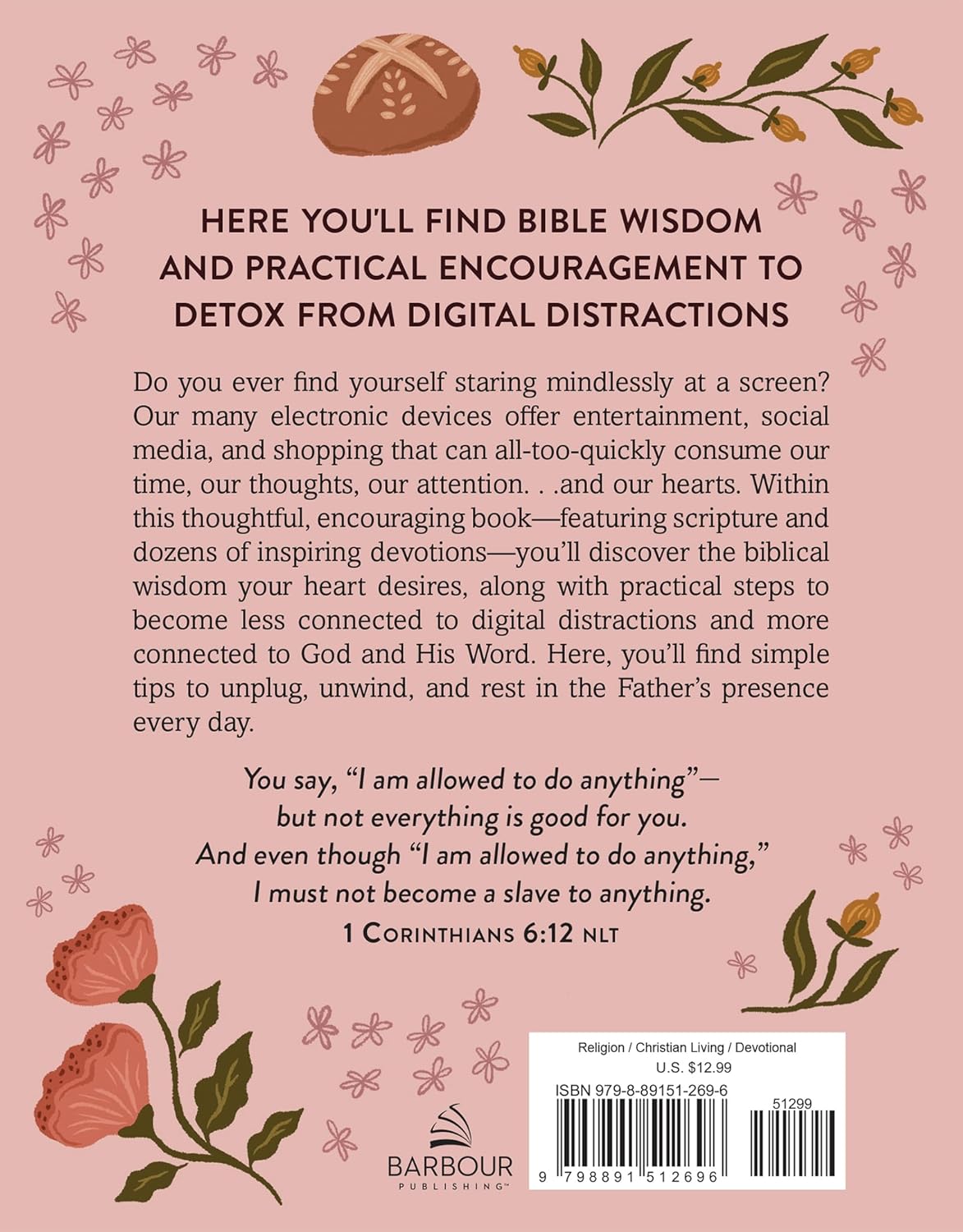 Do you ever find yourself staring mindlessly at a screen? TV, Netflix, YouTube, TikTok, Facebook, Instagram, and others forms of entertainment and social media can all-too-quickly begin consuming our time, our thoughts, our attention. . .and our hearts. Within this thoughtful, encouraging book--featuring scripture paired with dozens of inspiring devotions--you'll discover the biblical wisdom your heart desires and the practical steps you need to become less connected to digital distractions and more connected to God and His Word. Here you'll find simple tips to unplug, unwind, and rest in the Father's presence every day.