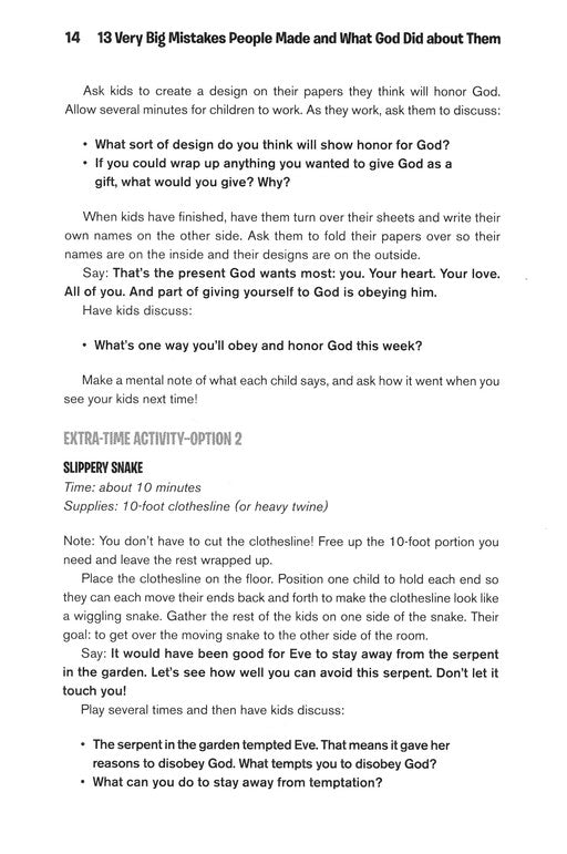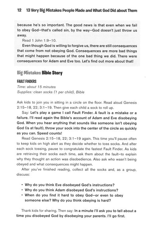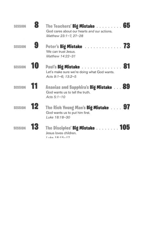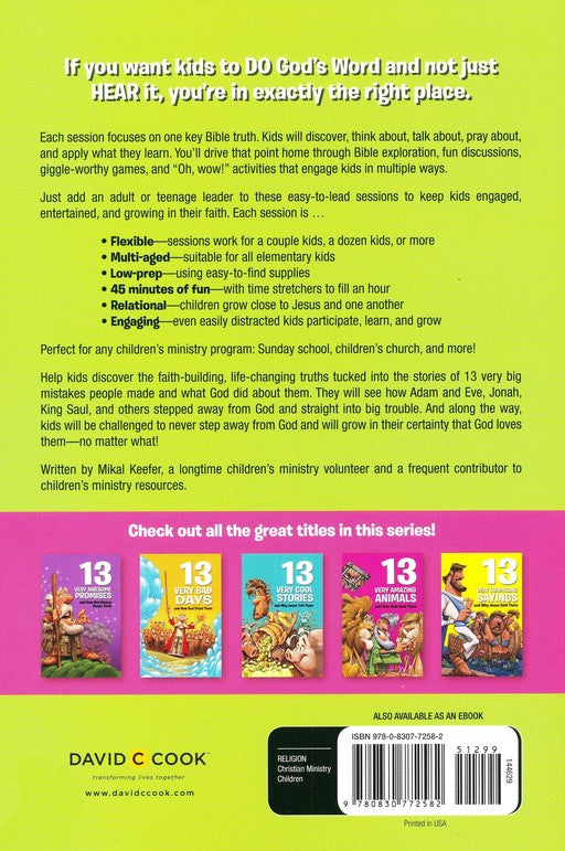 Help kids discover the faith-building, life-changing truths tucked into the stories of 13 very big mistakes people made and what God did about them. They will see how Adam and Eve, Jonah, King Saul, and others stepped away from God and straight into big trouble. And along the way, kids will be challenged to never step away from God and will grow in their certainty that God loves them—no matter what!