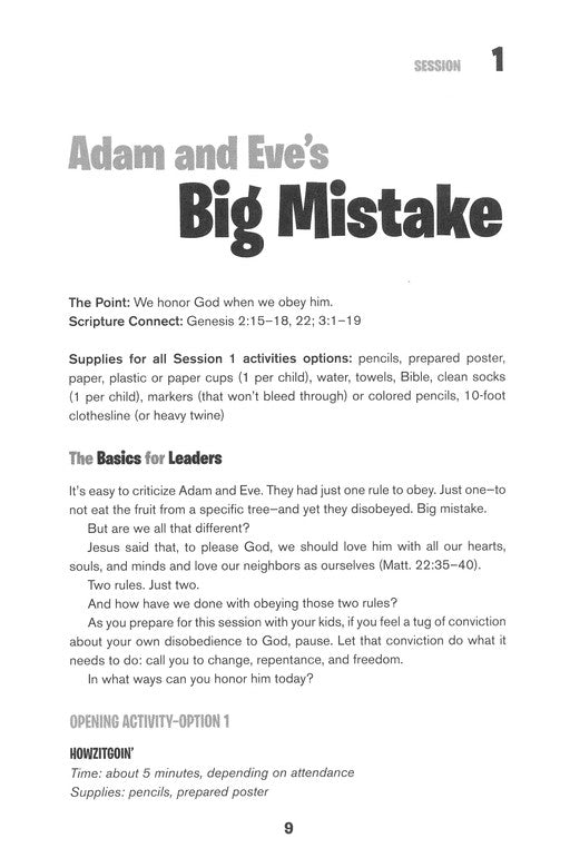 Each book in the series contains 13 very easy and engaging sessions that focus on one key Bible truth. Kids will discover it, think about it, talk about it, pray about it, and apply what they learn. Each session is