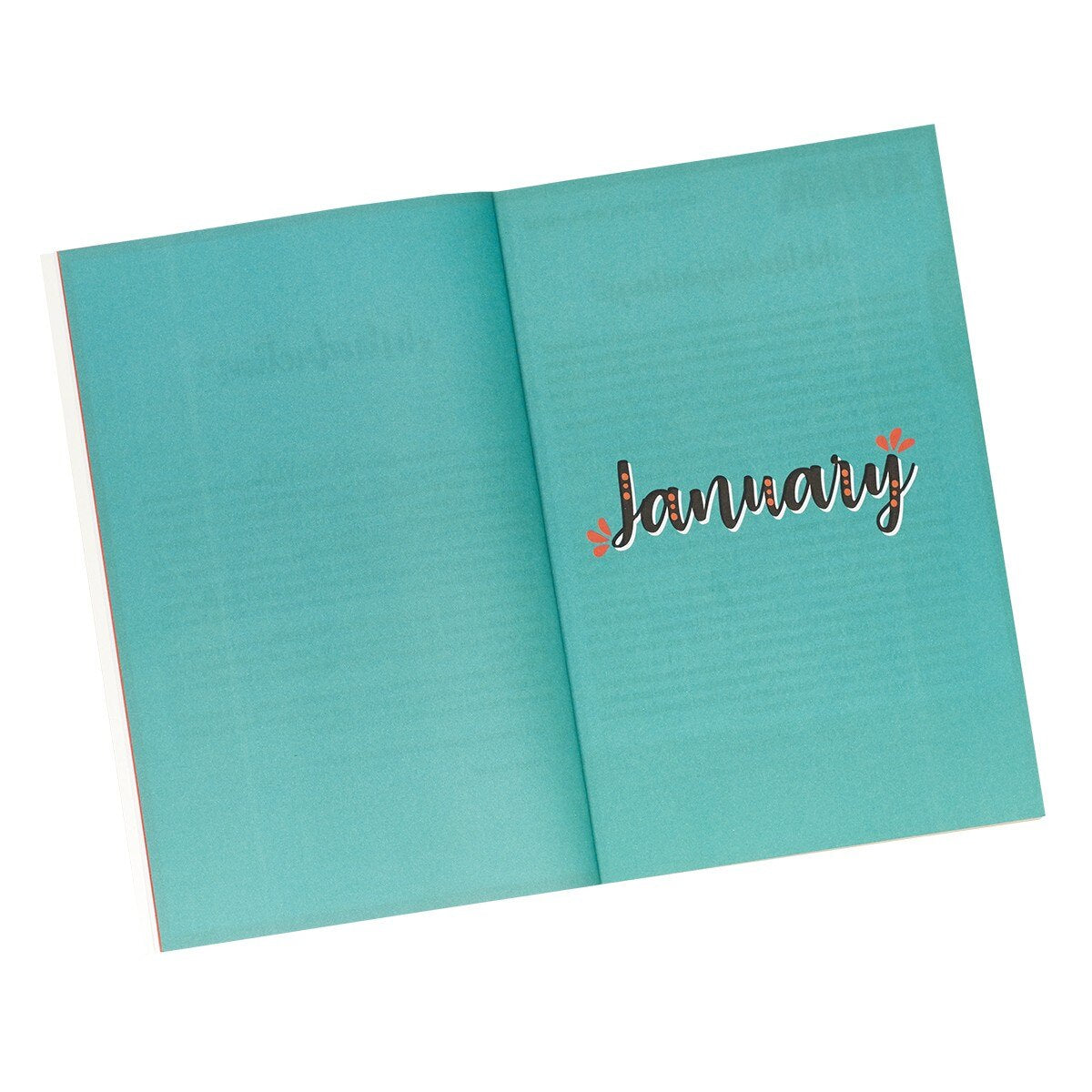 The softcover book boasts a chalkboard-black cover emblazoned with a vibrantly colored title and oodles of doodles. A UV-varnish treatment adds shine to the design and raises the lettering of the tile. But the color doesn't stop there—each page is marked by a colorfully printed edge that is organized by the month of the year.