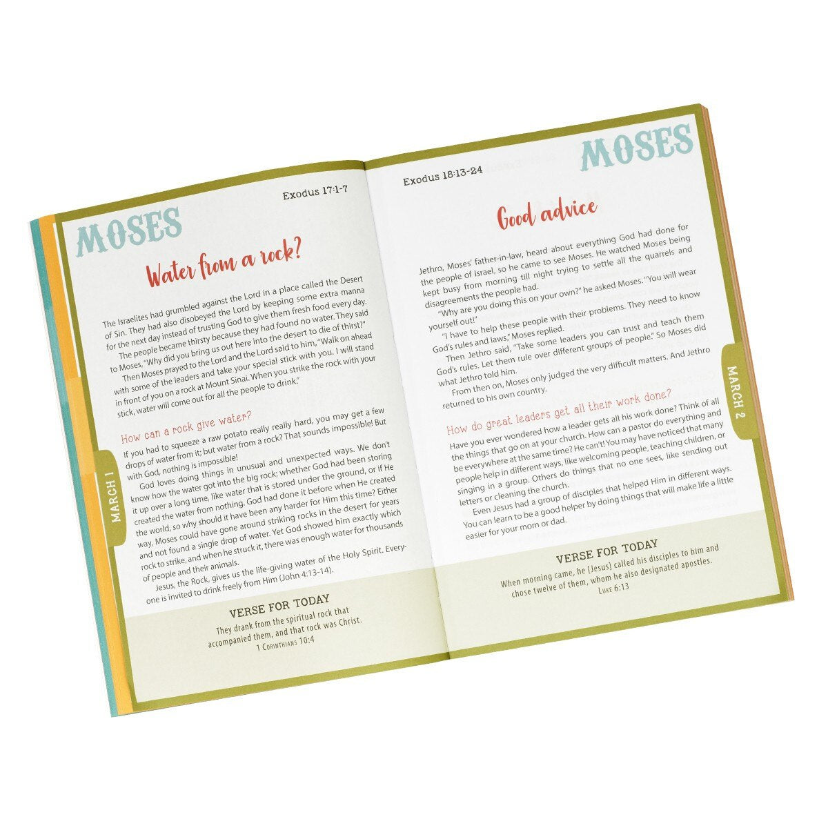 The book opens with a presentation page that can be personalized. 366 devotions follow a calendar year that starts in January and ends in December. The short devotions cover diverse topics such as sin, consequences, unforgiveness, faith, anxiety, and much more. Each month is dedicated to the lives of several Bible characters. Daily entries include suggested Bible passages, a recap of the biblical text, and practical life applications. Entries end with a daily Scripture verse to ponder. A topical index at the back of the book will guide readers toward a specific topic.