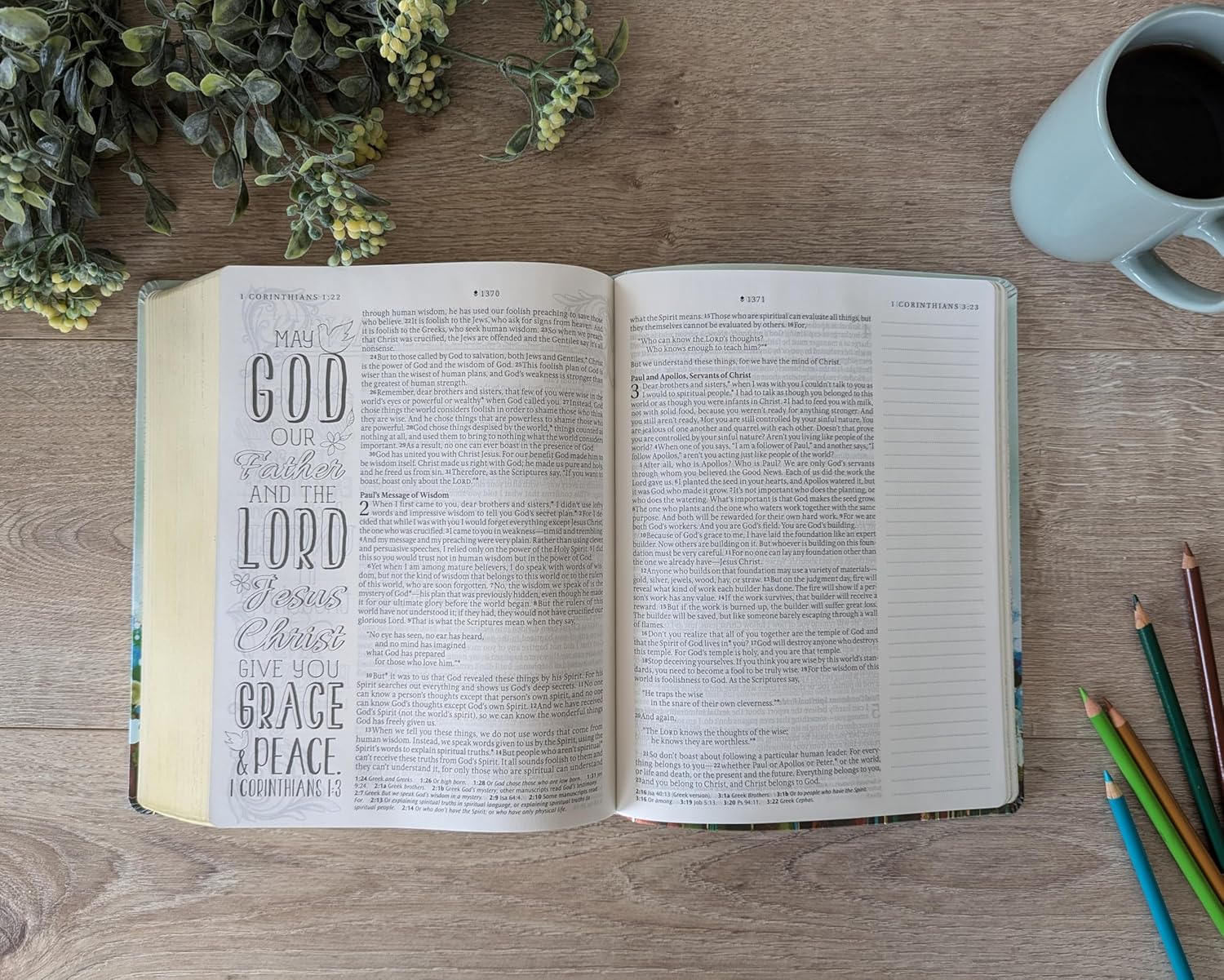 - Extra-wide 2.5” margins providing abundant room for writing notes, prayers, and personal insights, making your Bible a cherished keepsake of your spiritual journey.