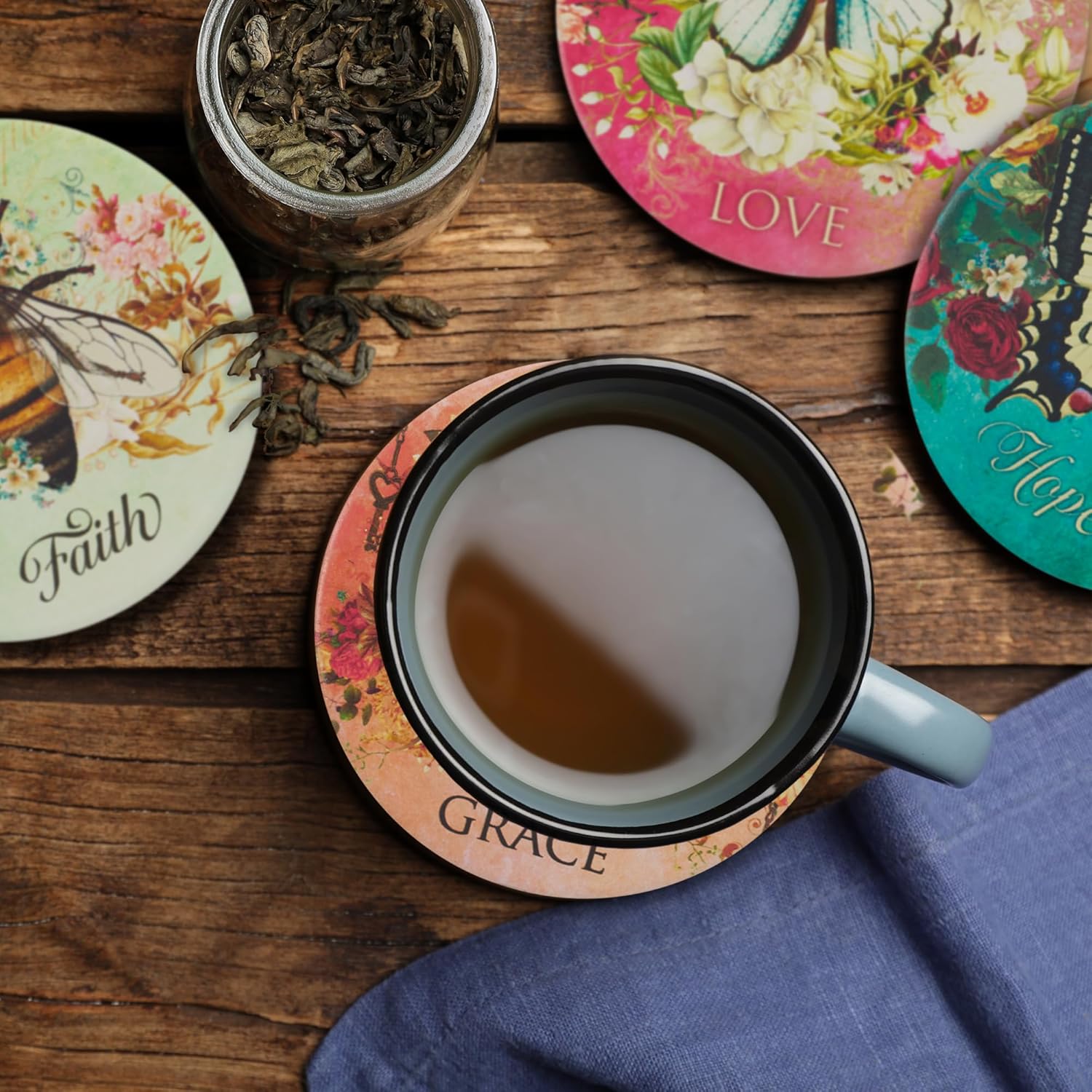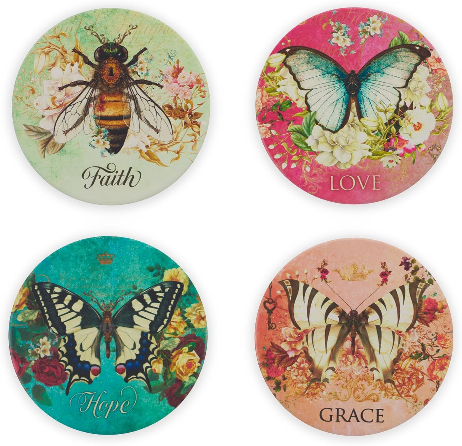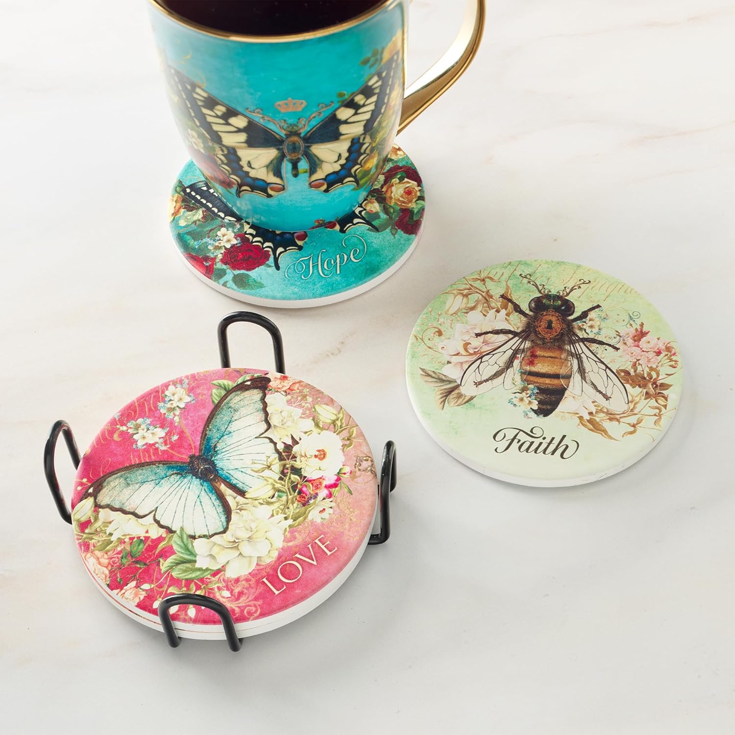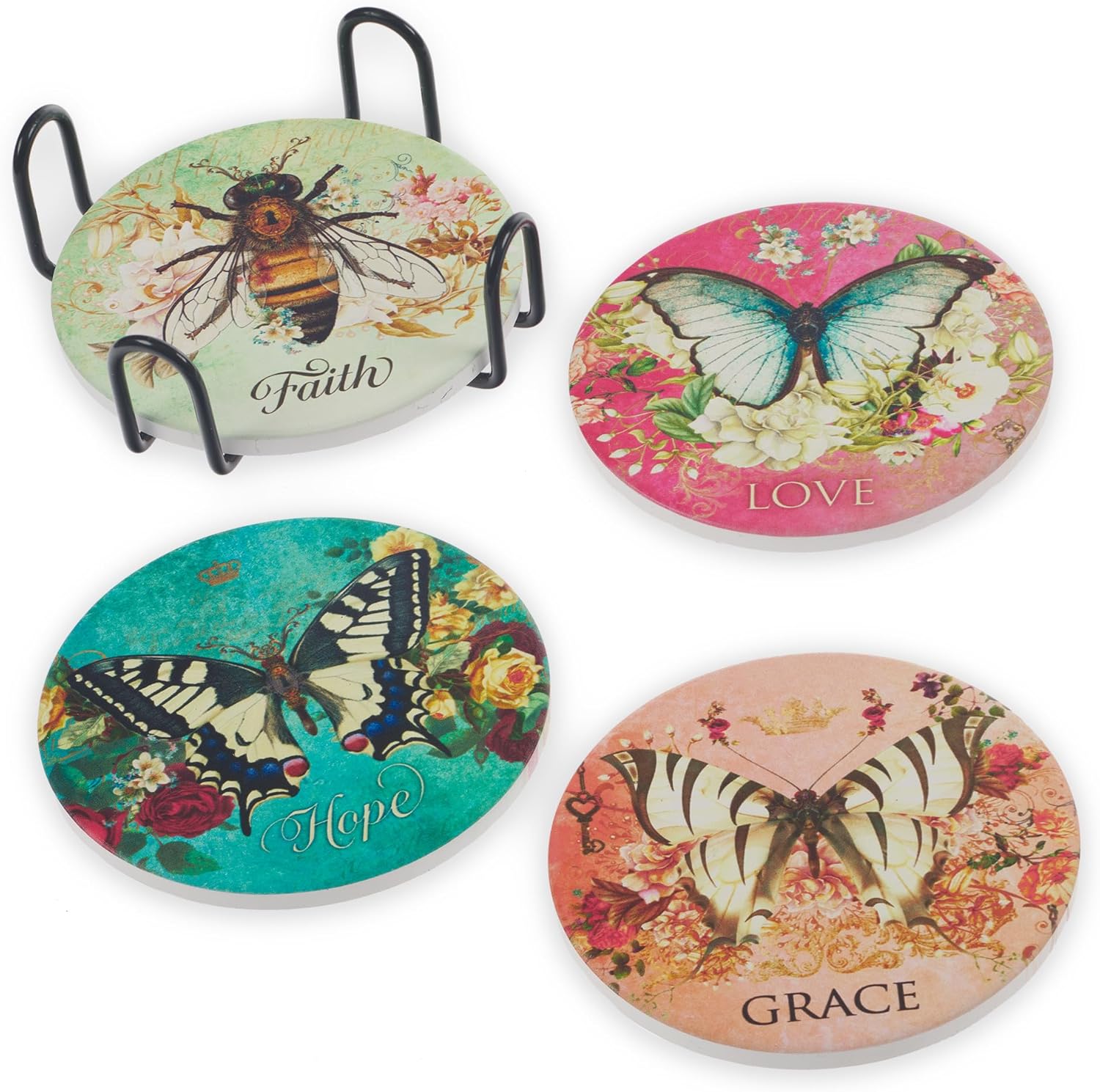 - A Great, Practical Gift Idea for a Loved One: Give a present of faith to a mom, sister, aunt, or grandma for a birthday, Christmas, anniversary, and more. The drink coasters can be paired with coordinating butterfly themed drinkware and stationery from our Secret Garden Collection and are packaged in a matching gift box, ready for gifting.