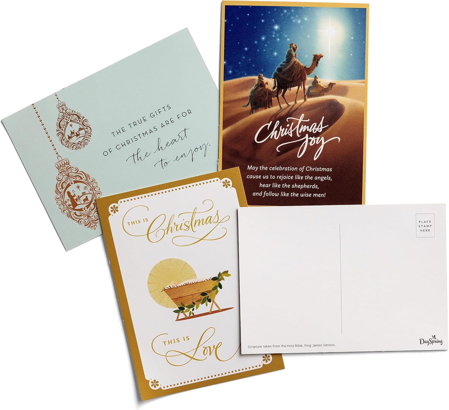- Inspirational messages: Each postcard includes uplifting and inspirational messages and Scripture that celebrate the true meaning Christmas, adding a touch of joy and encouragement to your holiday greetings.