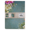 The first notebook in the set is adorned with a stunning peacock, set against a lush green backdrop. Majestic and proud, the blue peacock is gracefully surrounded by large pink flowers and delicate golden swirls. A lacy frame in antique gold elegantly borders the edges of the notebook, perfectly complementing the sentiment that is presented in gold-foiled letters.