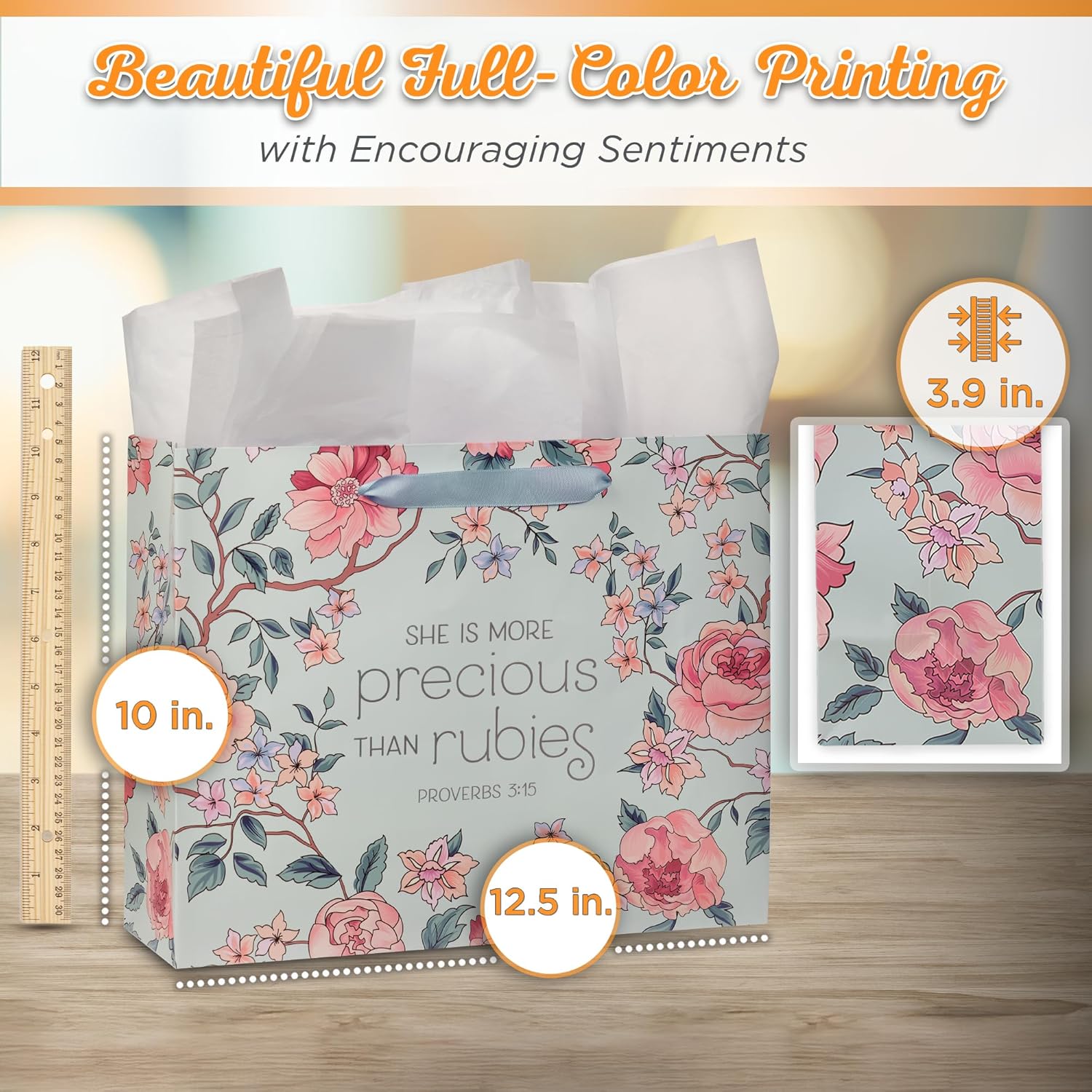 Show your mom how much you appreciate her input in your life when you wrap a gift in the More Precious Than Rubies Pink Floral Large Landscape Bag with Card this Mother's Day.