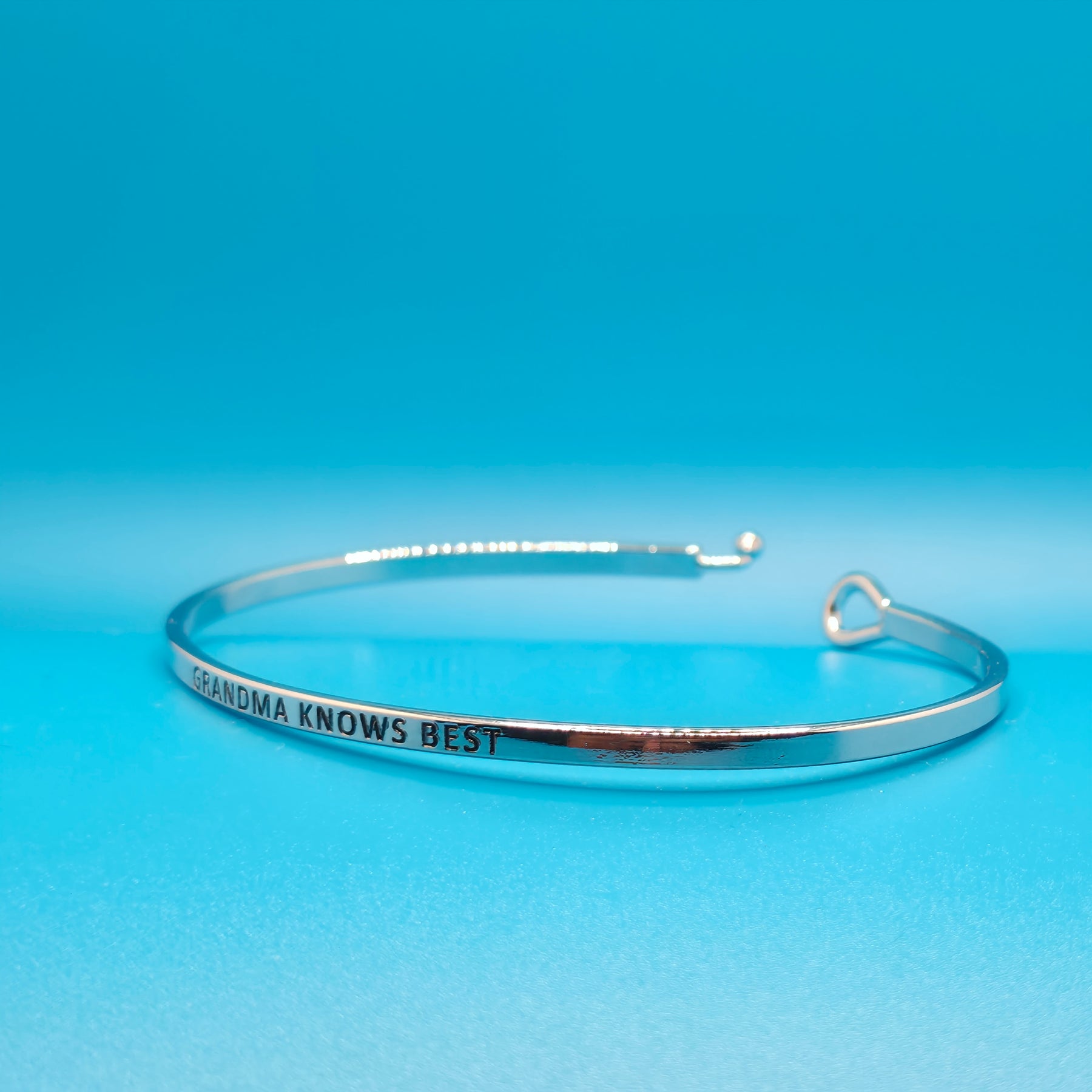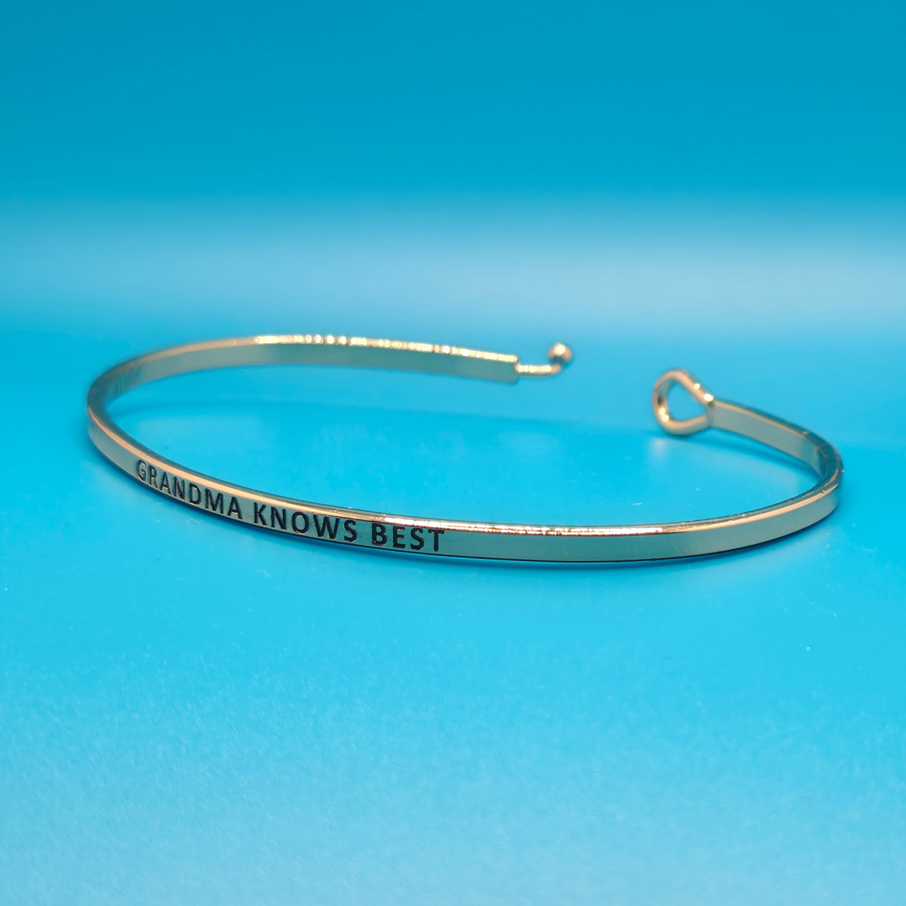 Inspirational Bracelets for Personalized Gifts. Positive Message Engraved Thin Bangle Hook Bracelet.
