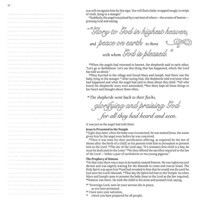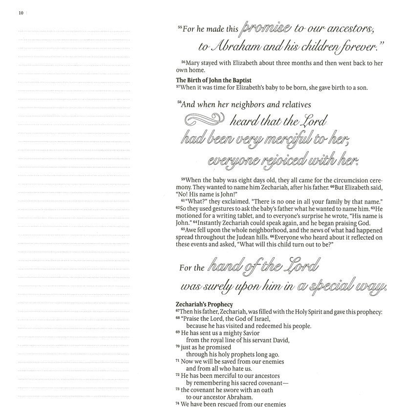 - 2 ½ -inch-wide ruled margins for prayers, notes, or creative expression