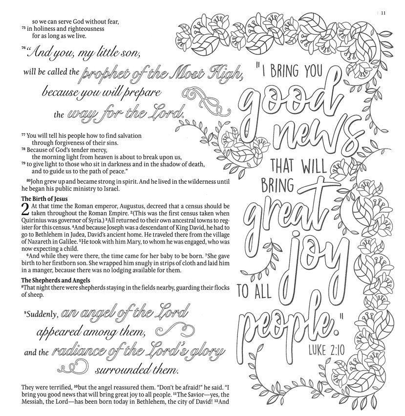 Inspire: Luke & John is an invitation to journey through the books of Luke and John, immersing yourself in Scripture while coloring and creative art journaling. Whether or not you consider yourself artistic, everyone has God-given creativity, and it can be expressed in vastly different ways. Whether through coloring while meditating on Scripture; drawing or sketching; journaling prayers; doodling; splashing color across the page; adding tabs, tags, or embellishments; or any other form of creative expression, one thing is certain—you have a creative Creator, and you were made in his image!