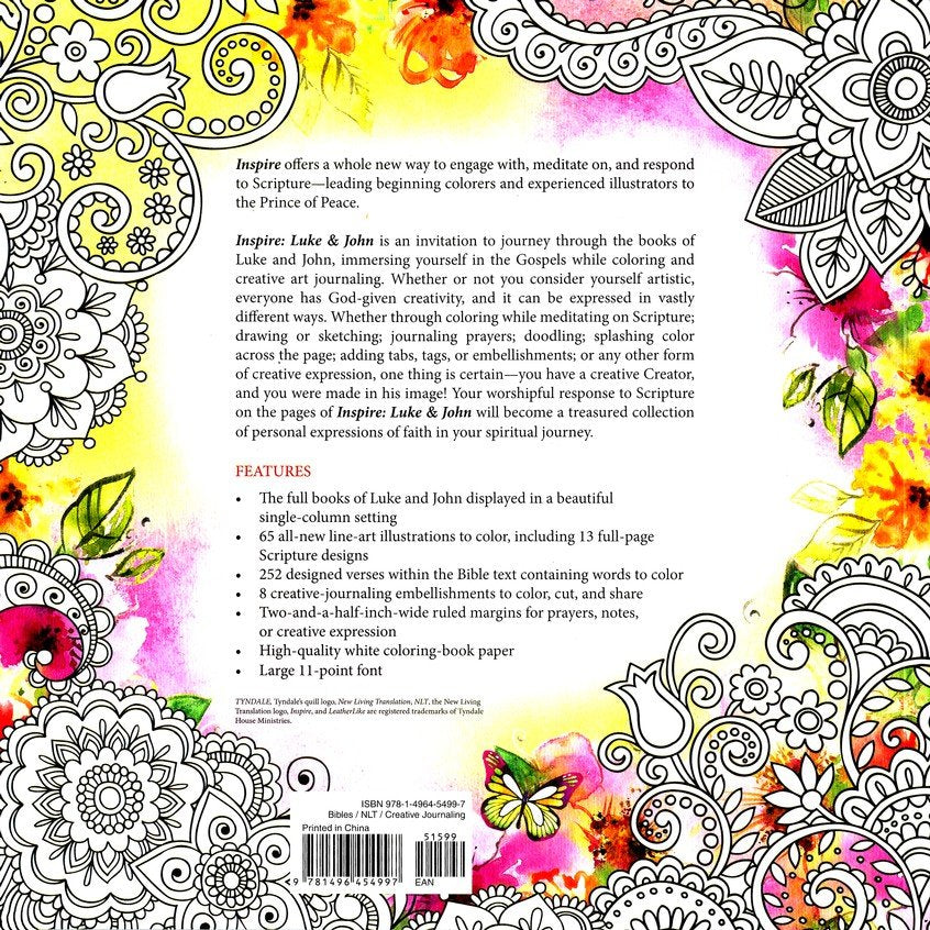 Inspire: Luke & John Coloring & Creative Journaling through Luke & John by New Living Translation and Tyndale
