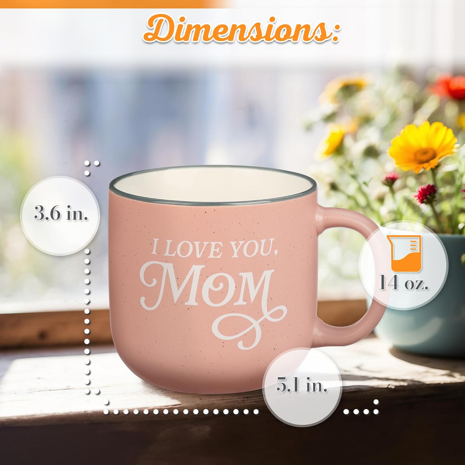 Looking to make your mom's day a little brighter? The pretty I Love You, Mom Pink Ceramic Coffee Mug is a cute way to say how much she means to you. It's a great Mother's Day or birthday gift, but she will love it on a day when she needs a little extra love. Whenever she sips from it, she will remember that your love for her is as warm and comforting as her morning coffee.
