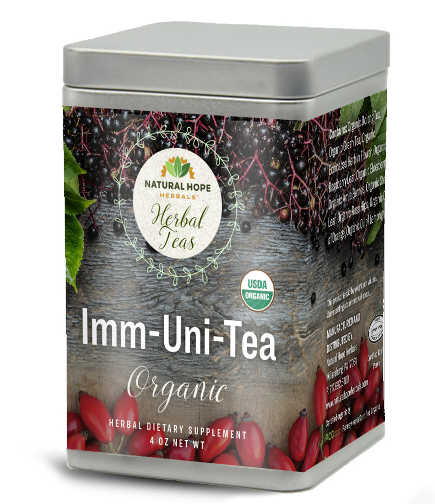 Imm-Uni-Tea brings you a refreshing citrus tea flavor with the immune boosting power of Amla Berry, Echinacea, Raspberry Leaf, Elderberry, and Rose Hips.