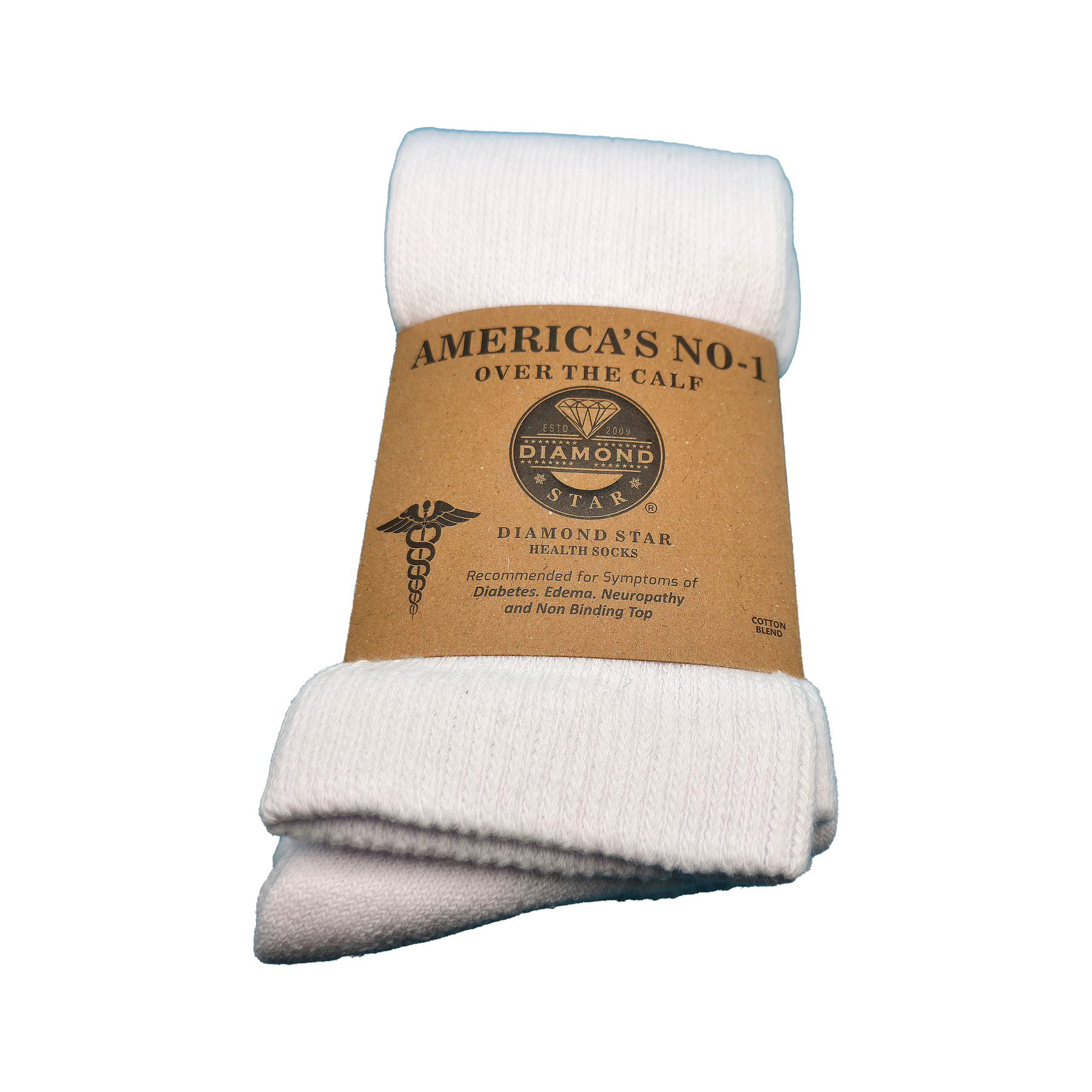 Over The Calf Diabetic Socks! Sizes 10-13 - White 2 Pack (White)