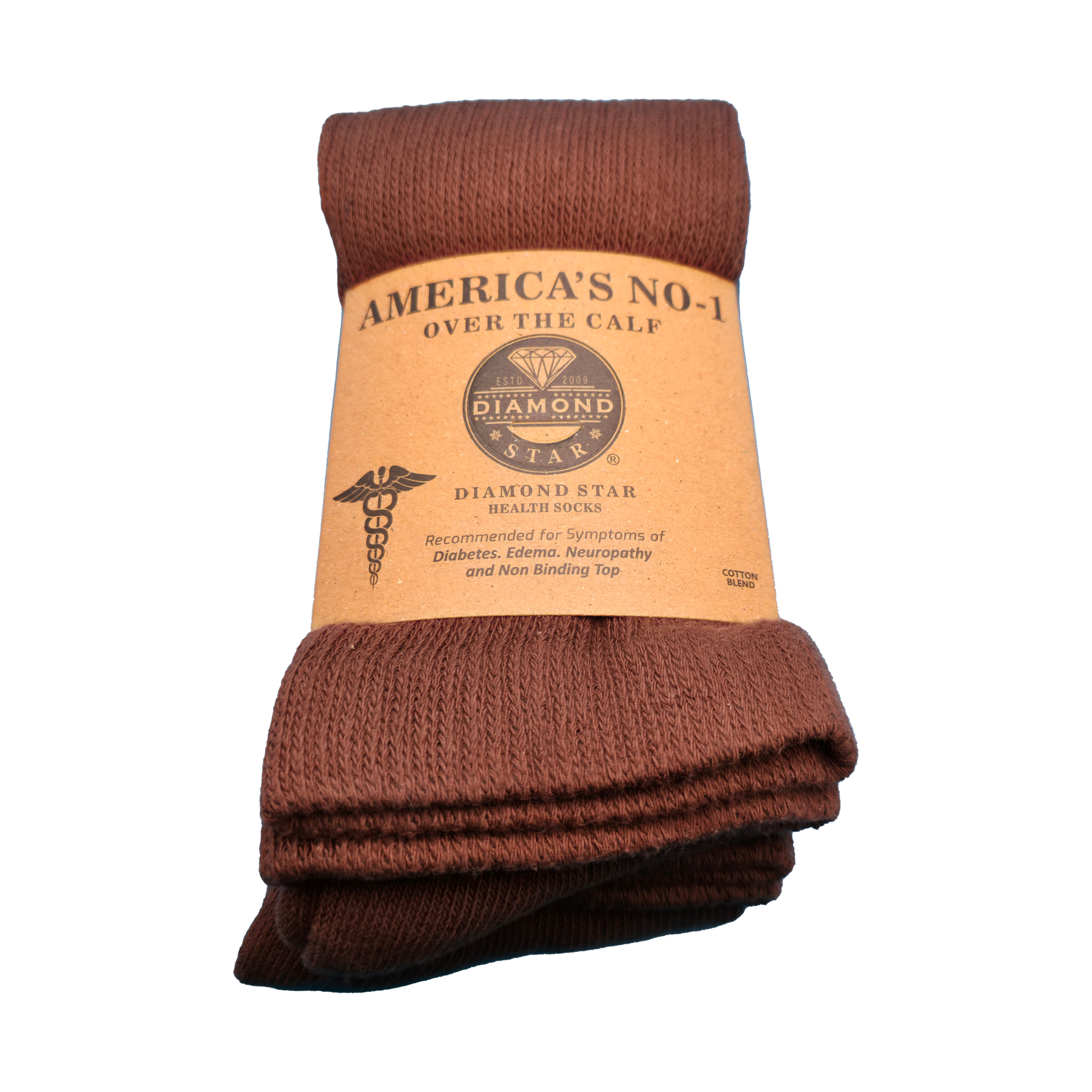 Over The Calf Diabetic Socks! Sizes 10-13 - Brown 2 Pack (Brown)
