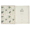 The printed page edges, with their soft watercolored blooms, add a whimsical feel to the refined design. Two satin ribbon markers are attached to the lay-flat spine to mark several pages at once, and a presentation page at the front of the Bible allows you to turn this beautiful Bible into a precious gift.