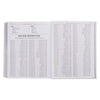 Sliver gilt-edging protects the page edges from dust and moisture and adds to the gravitas of the design. In addition, 2 satin ribbon page markers are included so you can mark multiple pages simultaneously. The large Bible features a Smyth-sewn lay-flat binding that allows it to open flat without damaging the spine. This feature is convenient when the Bible is displayed on a podium. The family-friendly pages are printed in an easy-to-read 13-point font on paper substantial enough for even small hands. A presentation page at the front of the Bible can be personalized when this heirloom is given as a gift. An entire page is dedicated to the beloved Bible passage on love, 1 Corinthians 13. This makes this Bible especially appropriate to use in a wedding ceremony.