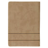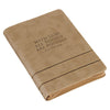 A smooth tan faux leather cover is gently mottled to resemble vintage suede leather. Two heat-debossed horizontal bands accented with tan topstitching stretch across the journal's bottom half. The heat-debossed sentiment is centered on the front cover.