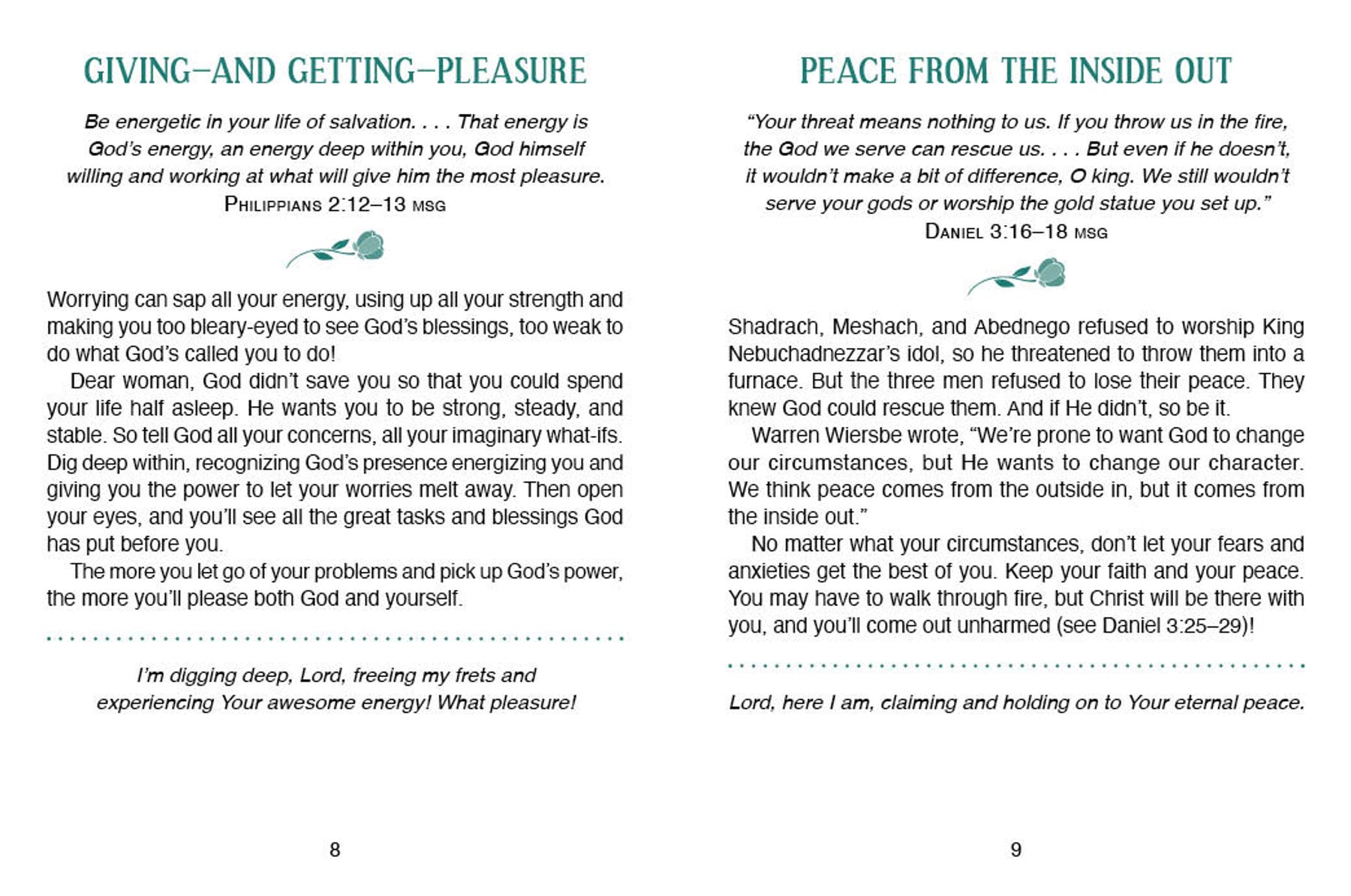 This purposeful devotional guide features 180 readings and prayers designed to help alleviate your worries as you learn to live in the peace of the Almighty God, who offers calm for your anxiety-filled soul. Inspired by this promise from God's Word: "Don’t fret or worry. Instead of worrying, pray. Let petitions and praises shape your worries into prayers, letting God know your concerns. Before you know it, a sense of God’s wholeness, everything coming together for good, will come and settle you down. It’s wonderful what happens when Christ displaces worry at the center of your life” (Philippians 4:6-7 MSG), Worry Less, Pray More reinforces the truth that with God, you can live anxiety-free every single day—whether you worry about your work, relationships, bills, the turmoil of the world, or something else.